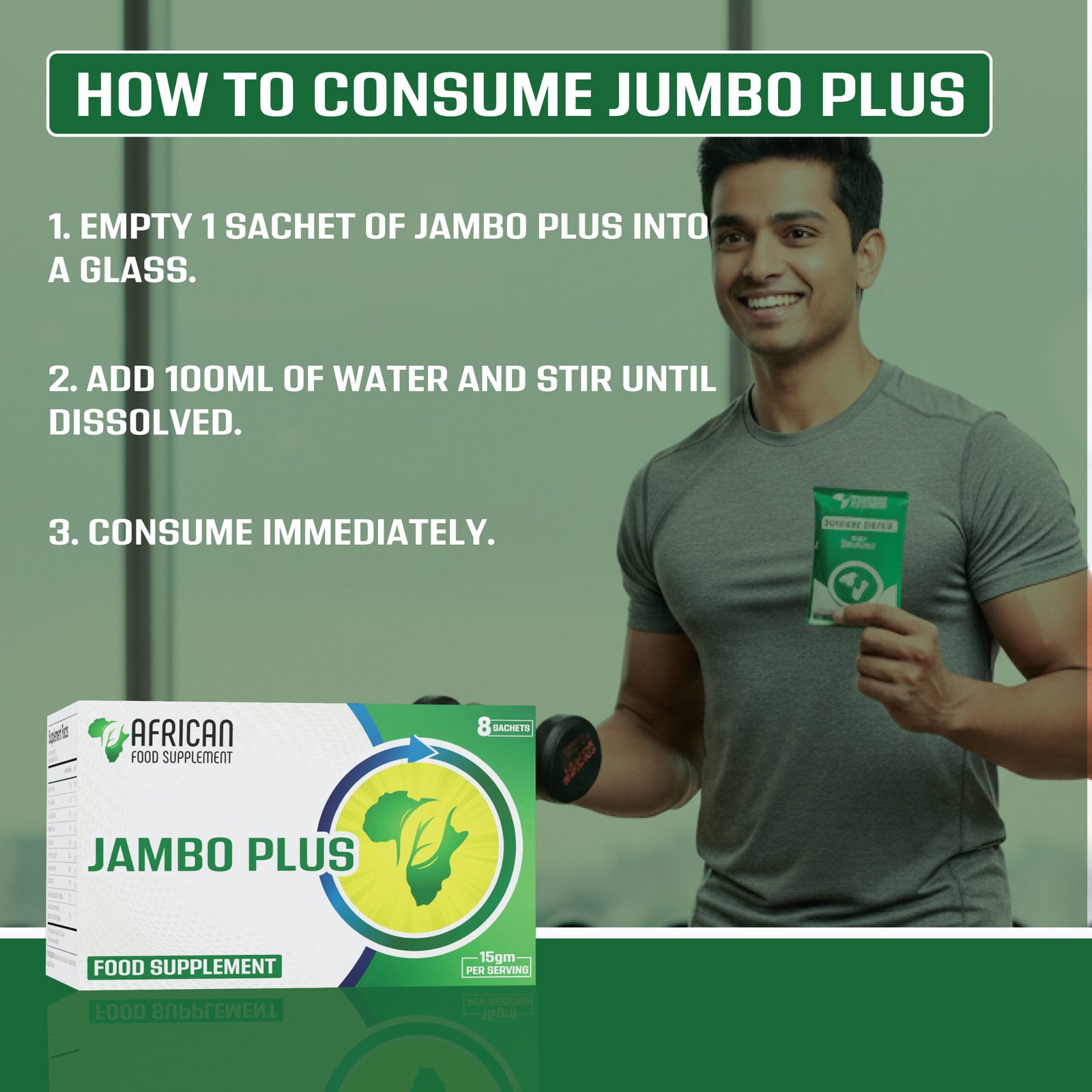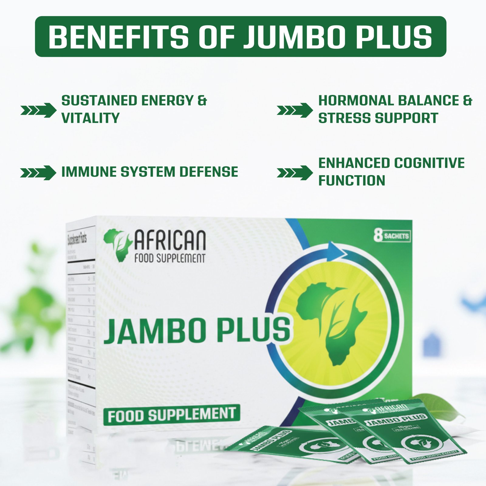 Elevate your daily wellness routine with Jambo Plus, a comprehensive food supplement scientifically formulated to bridge the nutritional gap. Each 15g sachet is packed with essential vitamins, minerals, and potent botanical extracts to support your body’s natural energy levels and overall health.