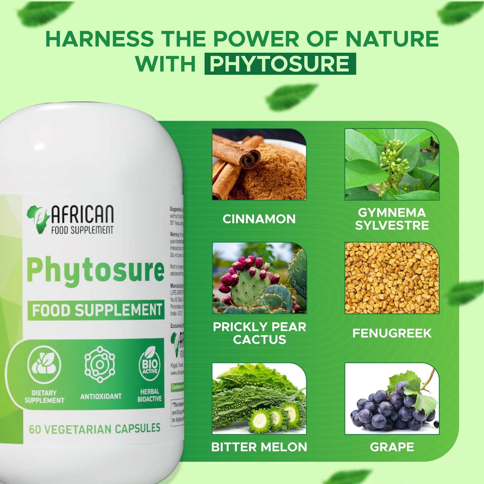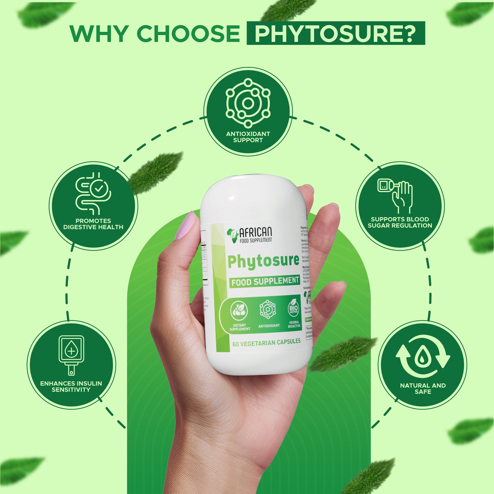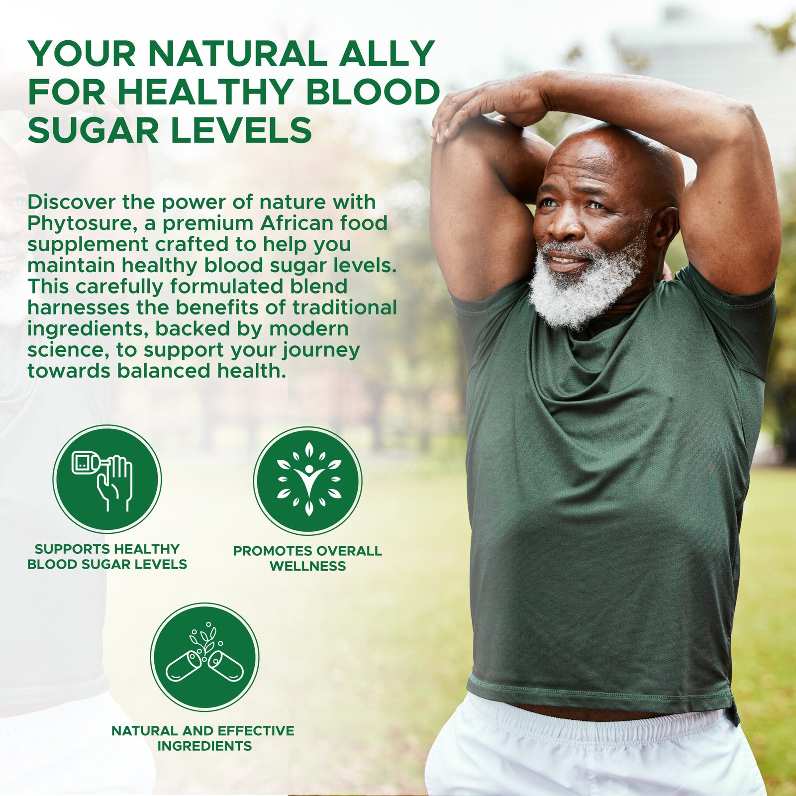 Discover the power of nature with Phytosure, a premium African food supplement crafted to help you maintain healthy blood sugar levels. This carefully formulated blend harnesses the benefits of traditional ingredients, backed by modern science, to support your journey towards balanced health.