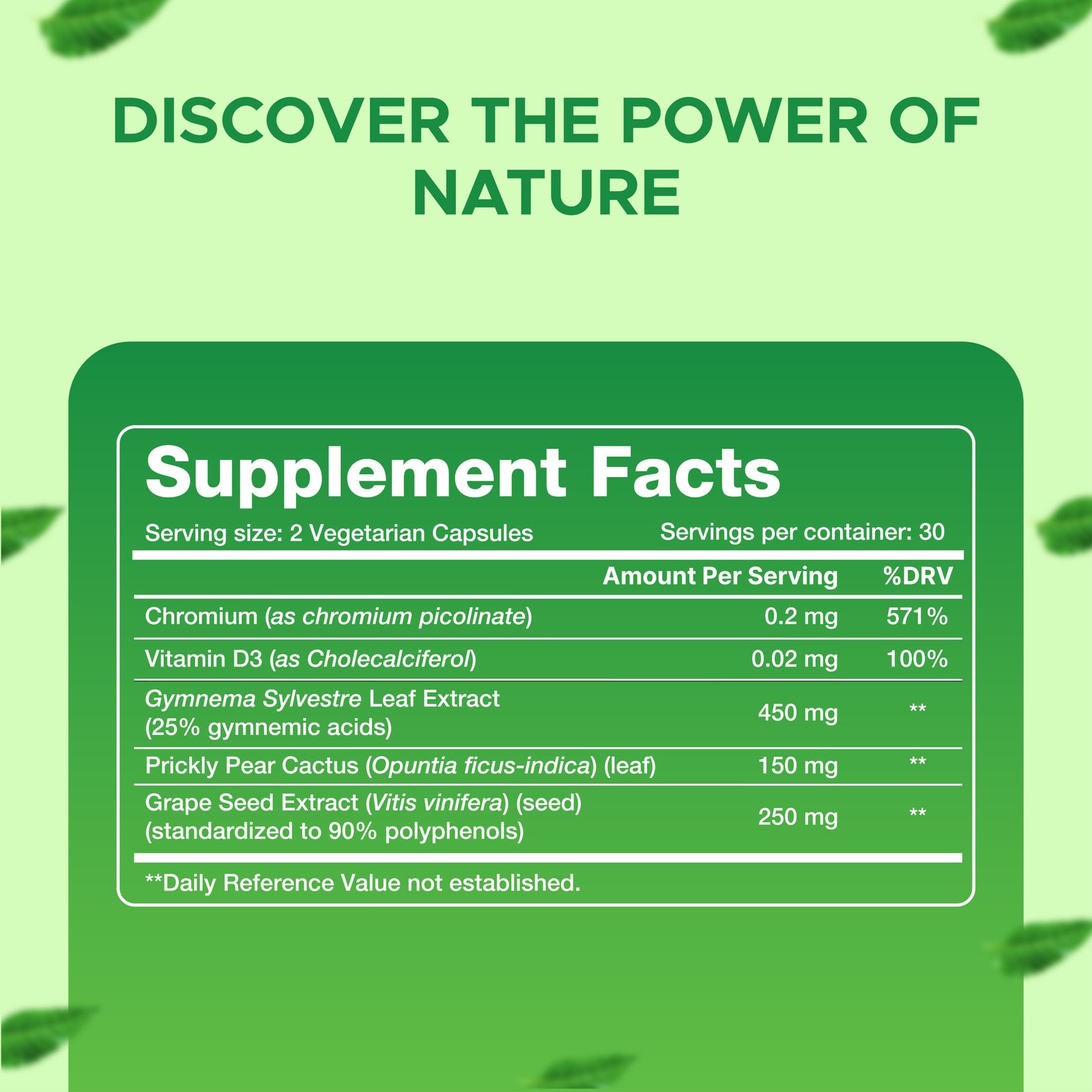2. Herbal Ingredients: Contains natural ingredients like Bitter Melon, Licorice Root, and Cinnamon Bark.
